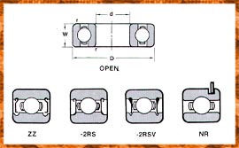 thrust or combination loads. Available with open, shields, seals or snap rings upon